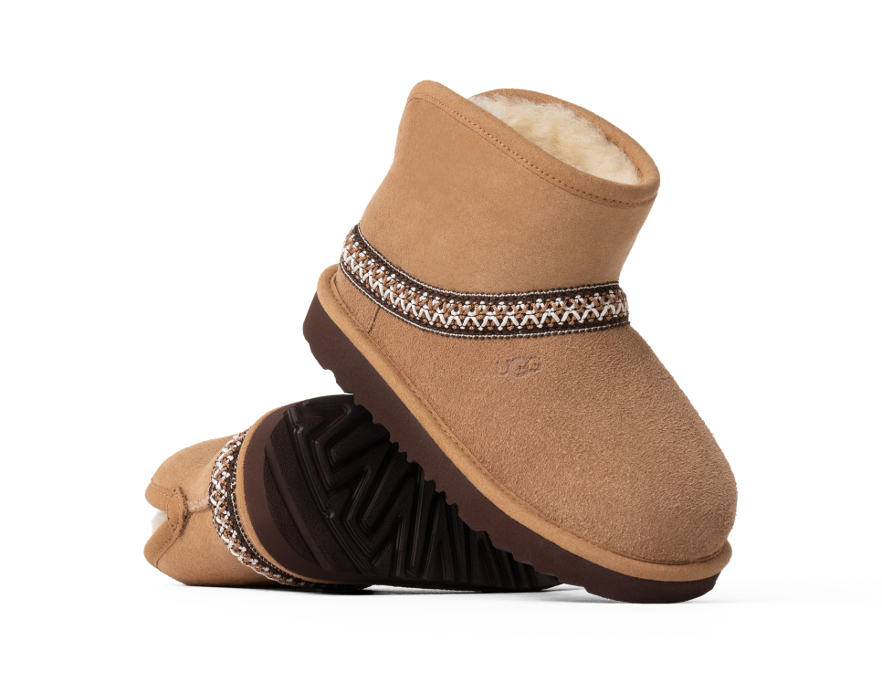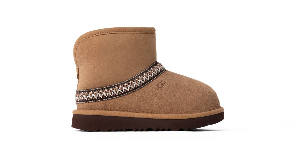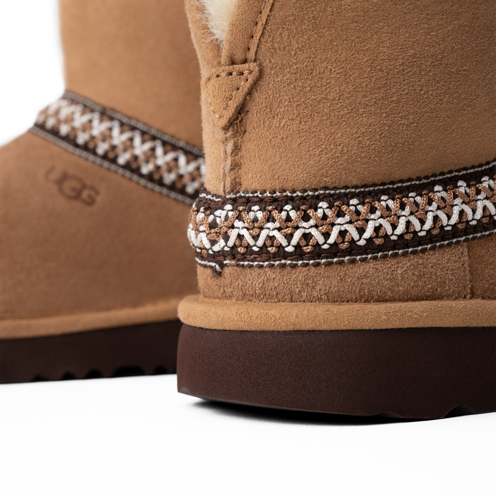 - UGGbraid made with 100% recycled polyester fibers, Suede vamp
