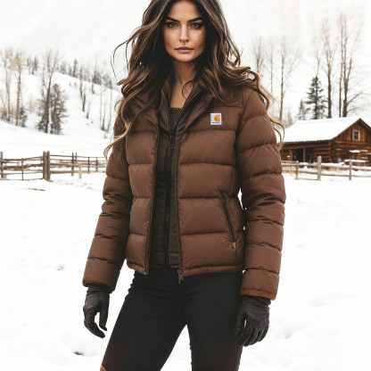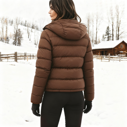 Warm and Stylish Brown Puffer Jacket for Winter Outdoors