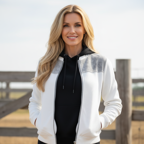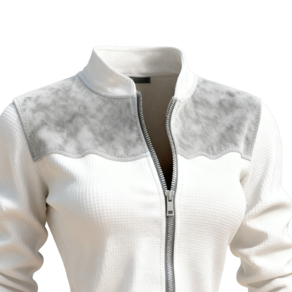 White and Grey Marble-Trimmed Zip-Up Jacket