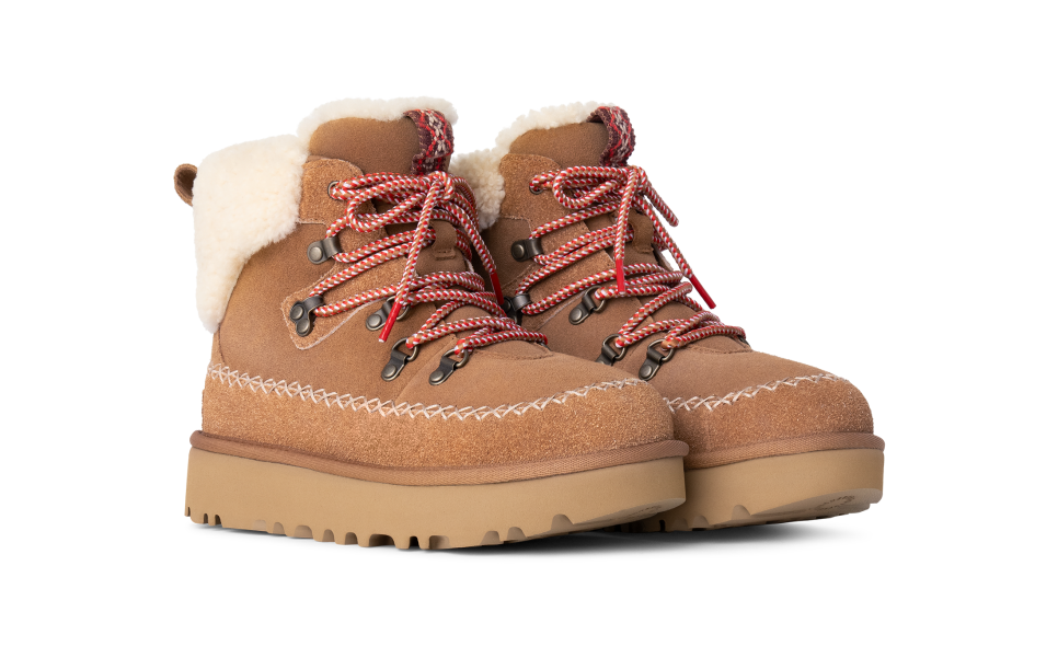- Metal eyelets, Rear pull tab, Speed hooks, 10mm curly sheepskin collar, UGGbraid detailing, Leather mudguard