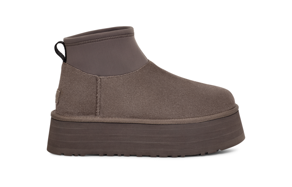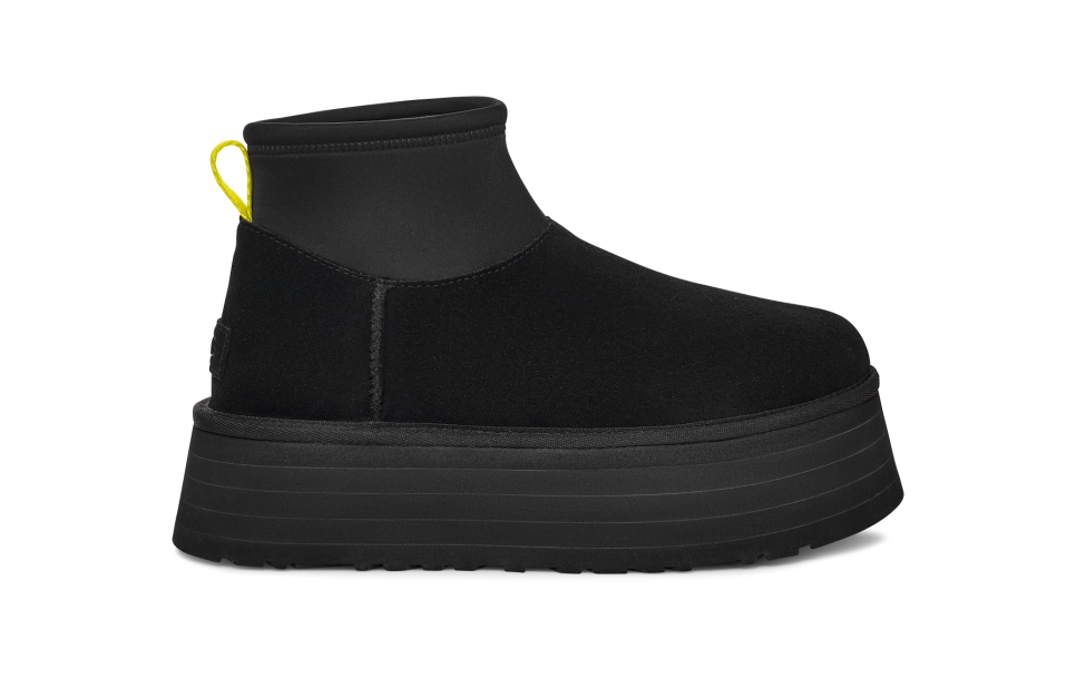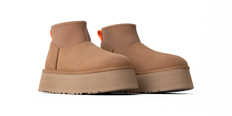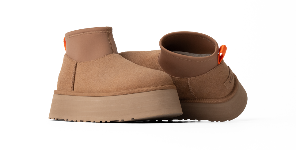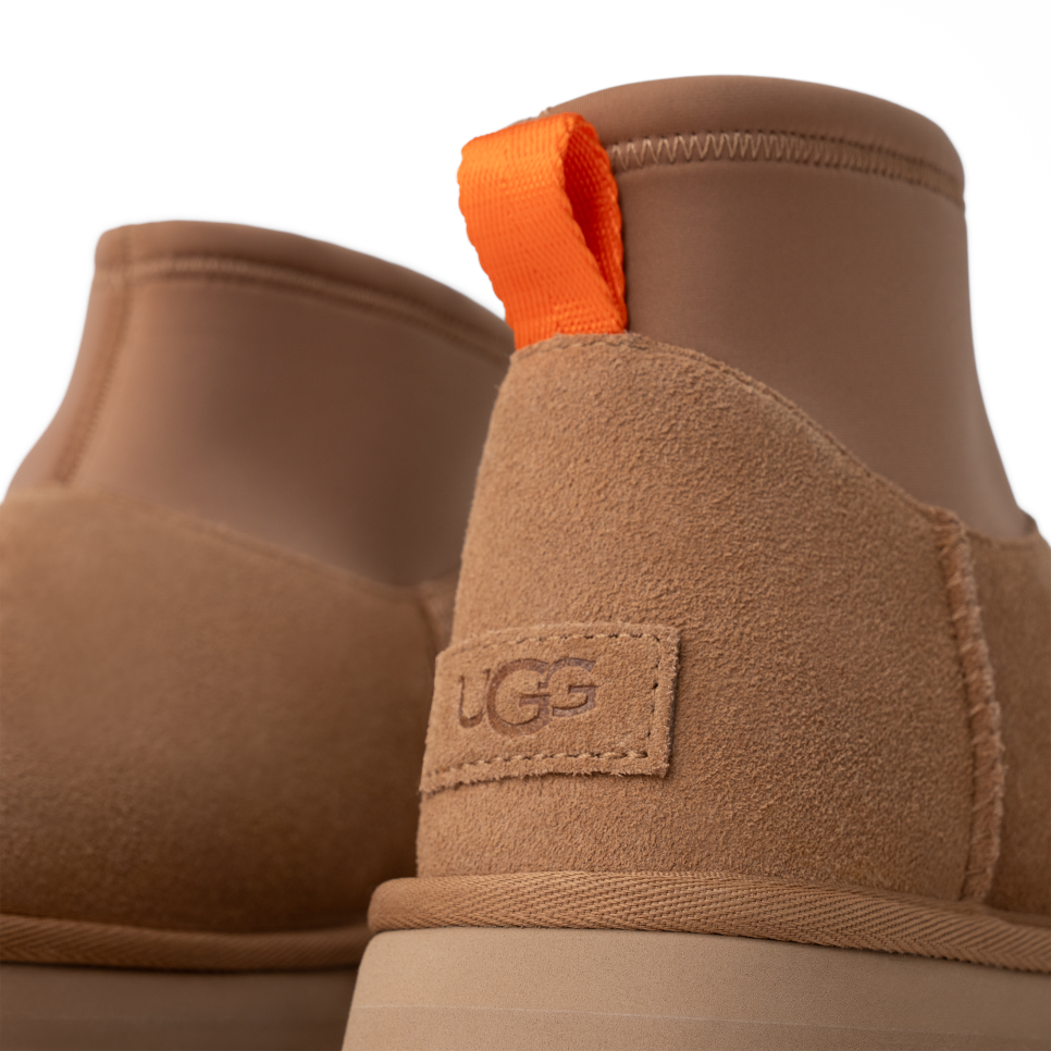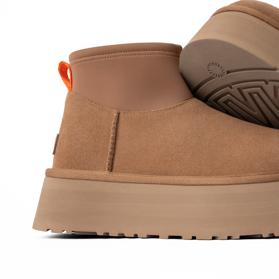 - The UGG® logo, embossed suede heel label