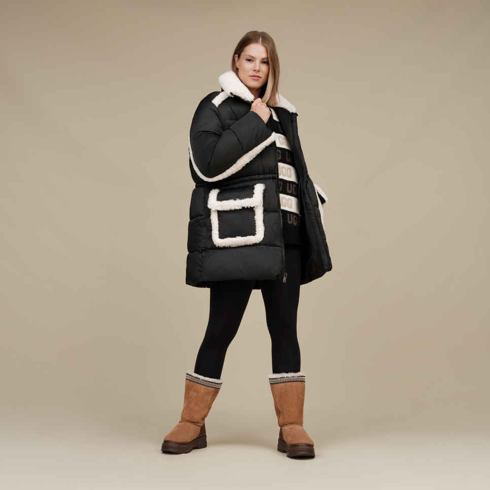 - Rear pull tab made from 100% recycled polyester fibers, UGGbraid detailing, Suede vamp, 17mm Twinface Sheepskin shaft, Leather mudguard, Leather heel counter