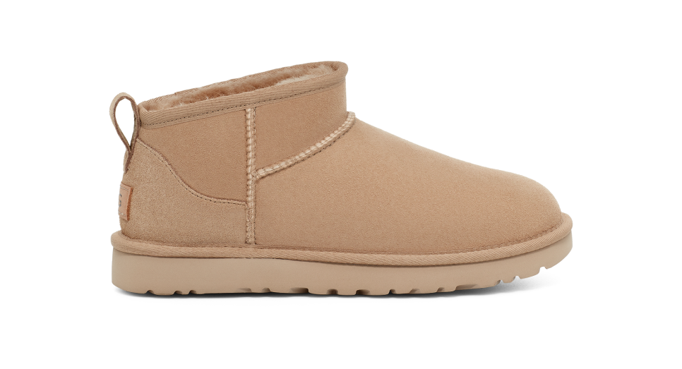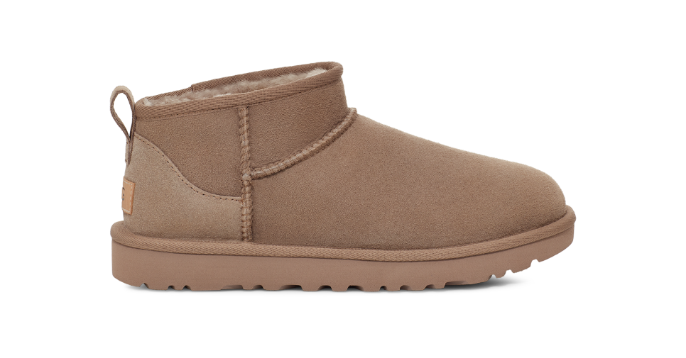 - The UGG® logo embossed leather heel label