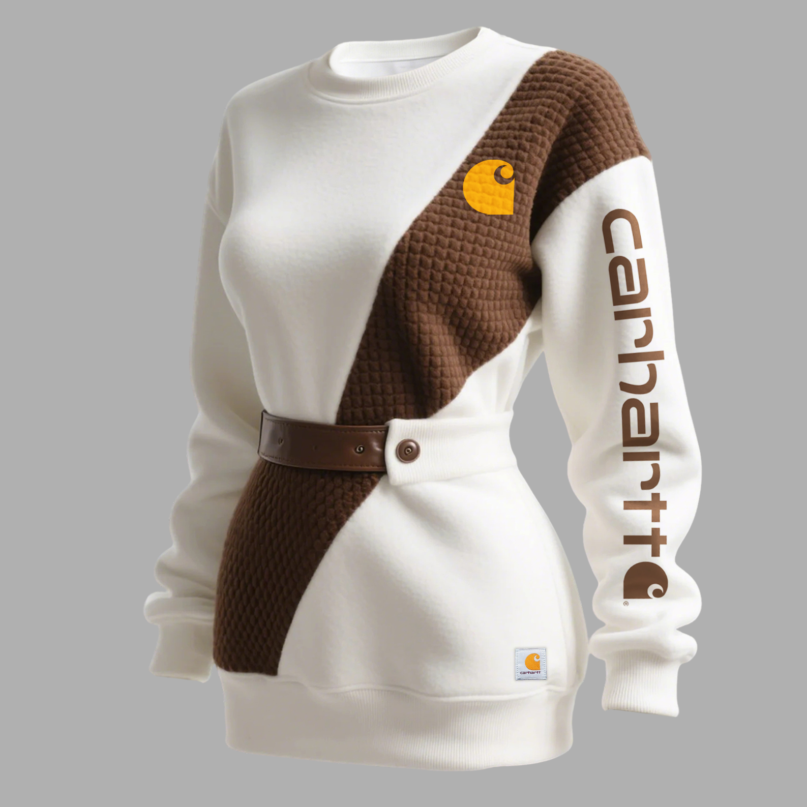 Women's Color-blocked Suede Fleece Sweatshirt With Leather Buckle Embellishment And A Fitted Waist.