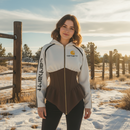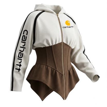 Women's Color-blocking Waist-cinching Hooded Jacket - The Ultimate In Sweet-cool Workwear Style
