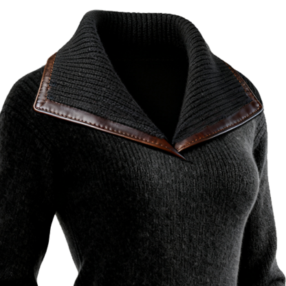 Women's Elegant Black Knit Dress With Leather Trim