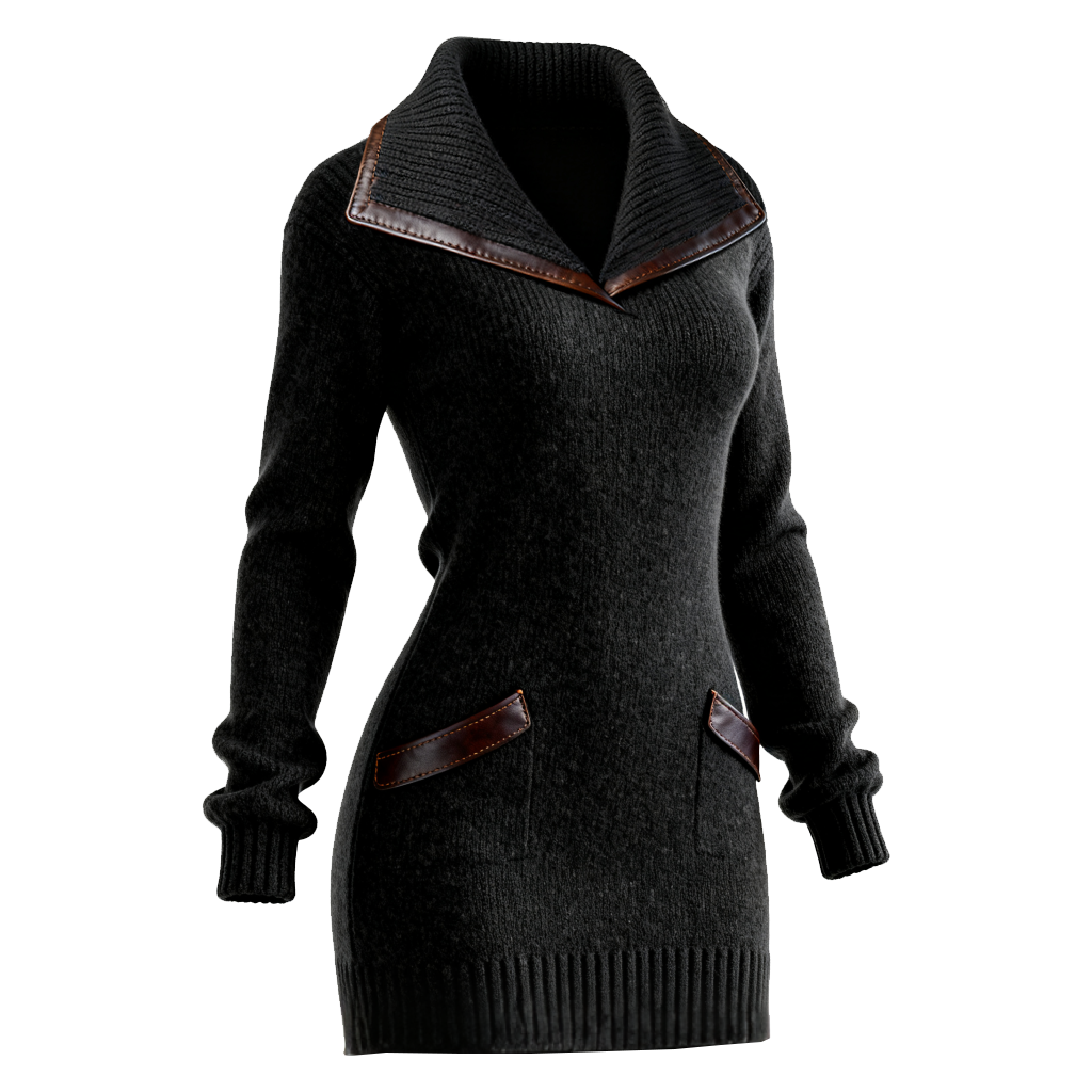 • The leather trim adds a touch of elegance to the classic knit dress.
