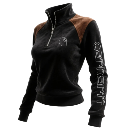 Women's Half-Zip Pullover with Contrast Shoulder Panels and Vertical Sleeve Logo