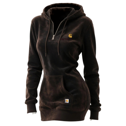 Women's Hooded Sweatshirt with Half-Zip Closure and Embroidered Logo