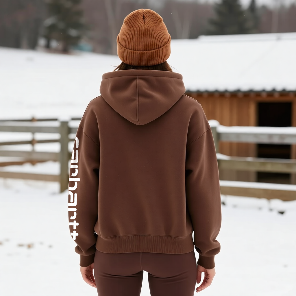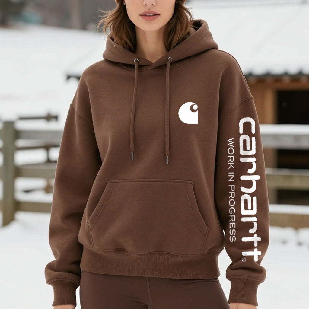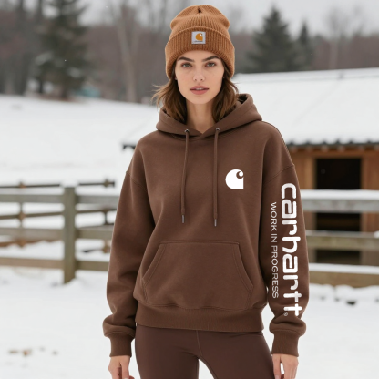 Winter-Ready Hoodie with Bold Logo and Sleeve Text
