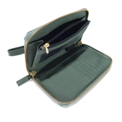 - Water resistant interior structure keeps wallet shape in damp or wet conditions