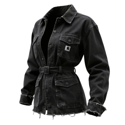 Women's Outdoor Retro Distressed Ripped And Ripped Multi-pocket Denim Work Jacket