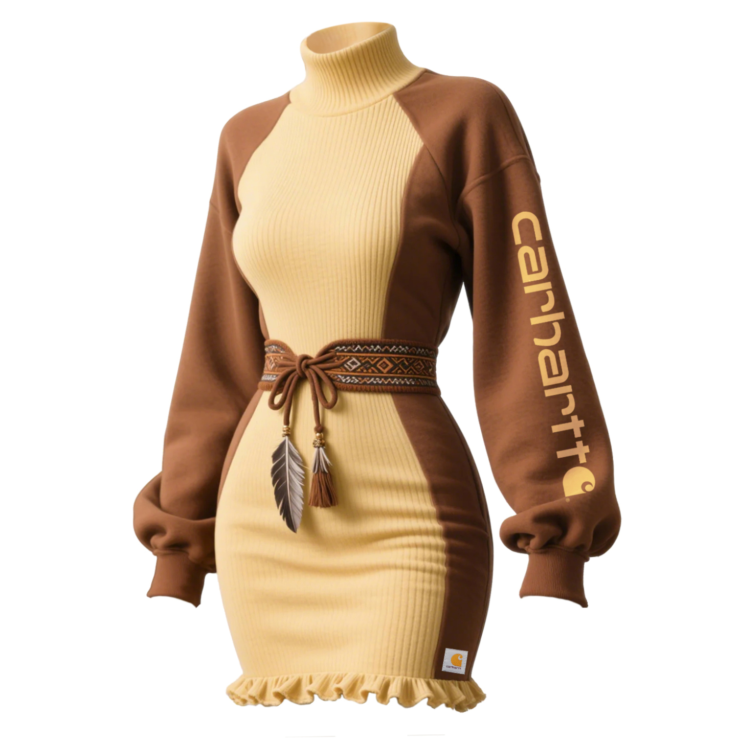 • Design Elements: Embroidered logo on the chest, feather tassel at the waist, color-blocked pattern