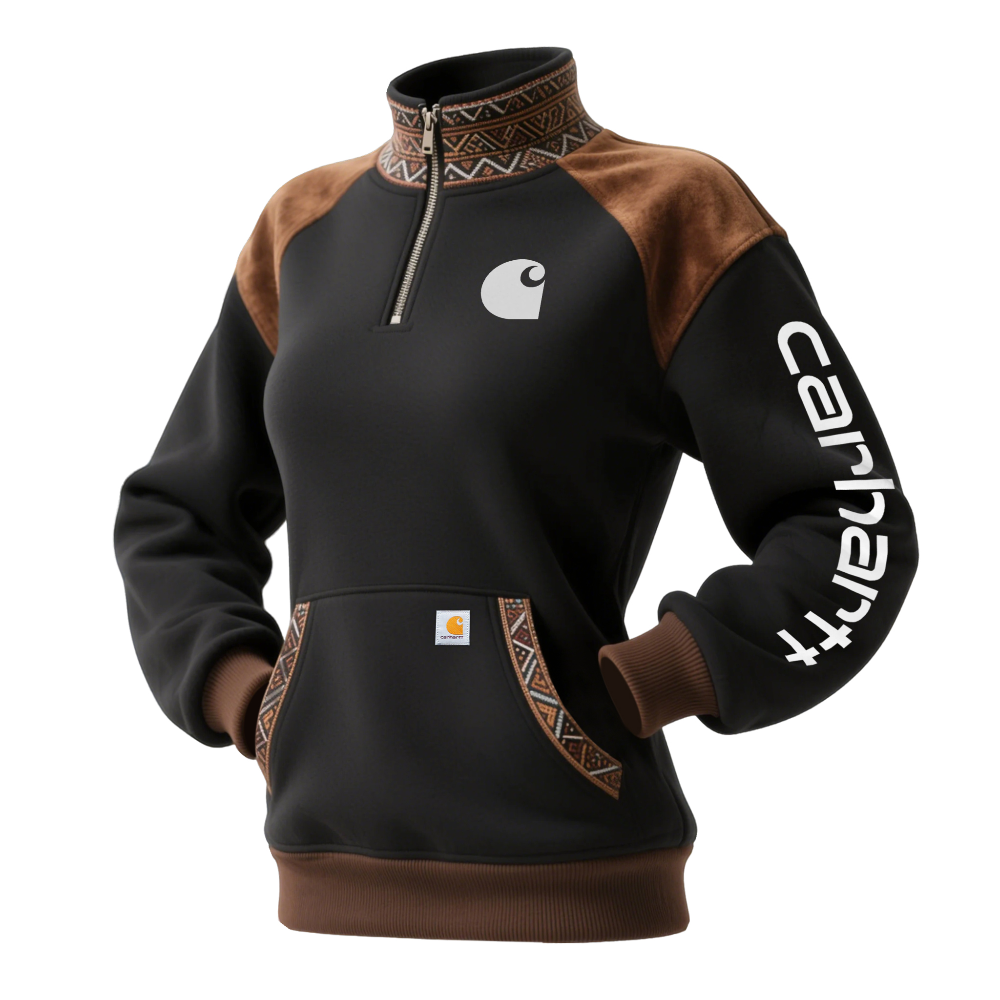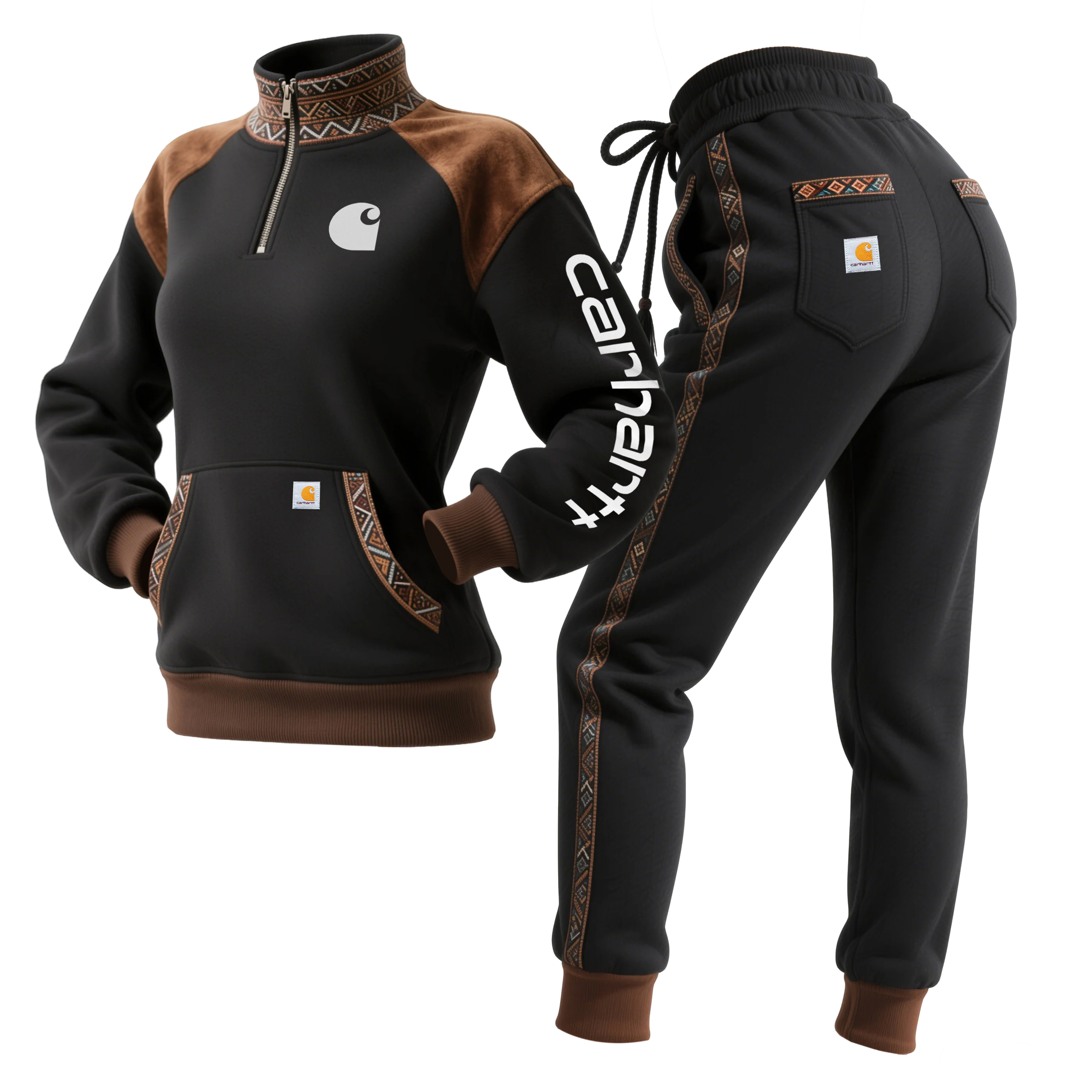 Women's Retro Ethnic Style Half-Zip Stand Collar Sweatshirt And Trousers Set