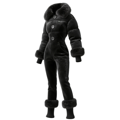 Women's Retro Thick Fur Collar Lapel Long Sleeve Jumpsuit