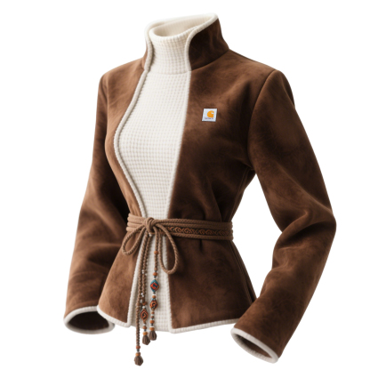Women's Waffle Color-blocked Suede Retro Ethnic Style Stand-up Collar Sweatshirt